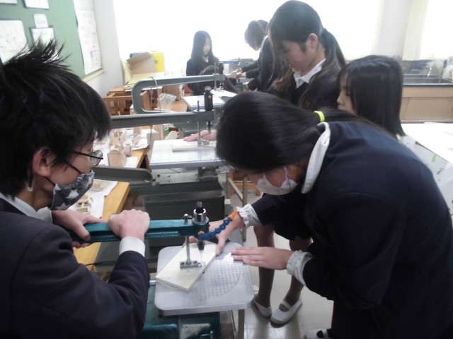 6年生が、電動糸のこぎりを使ってテープカッター作りに取り組んでいます。なかなか使い方が難しい電動糸のこぎりですが、使っていくうちにどんどん上手に切れるようになっていました。