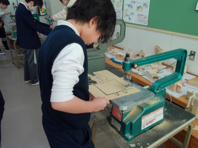 5年生が図画工作で「スペシャル伝言板」作りに取り組んでいます。電動糸のこぎりも上手に使えるようになり、素晴らしい作品が出来上がってきています。
