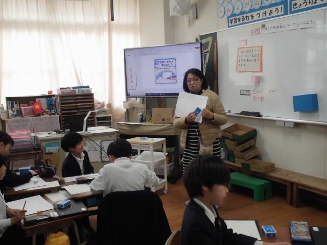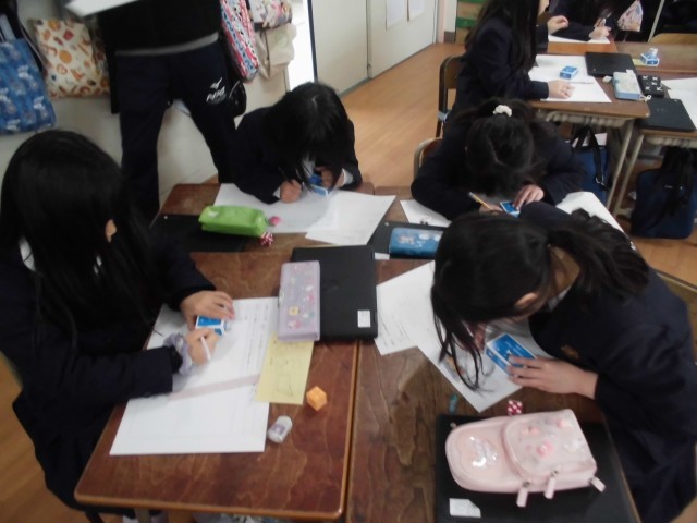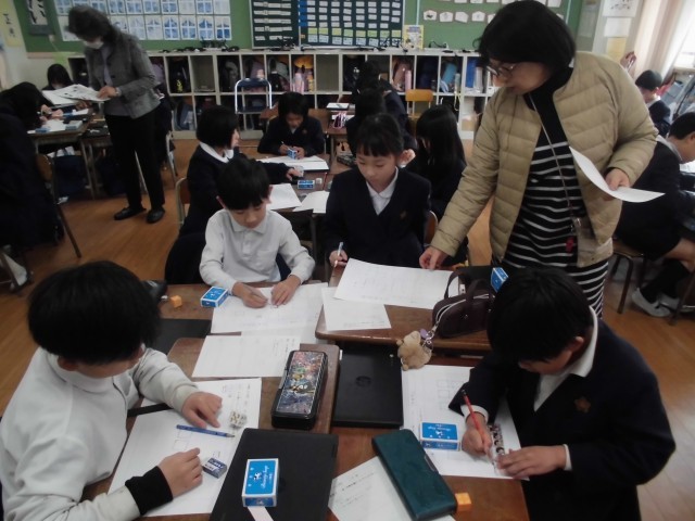 2年生が算数で「はこの形」について学習しました。せっけんやキャラメルの箱の面をワークシートに写し取ってどんなきまりがあるか考えました。箱の面を写し取るのが大変でしたが、みんな集中して頑張りました。最後はみんなで箱の面のきまりについて見つけ出すことができました。