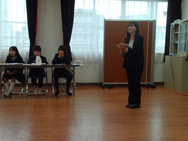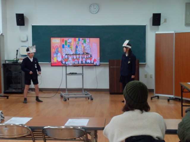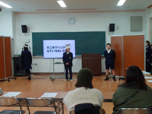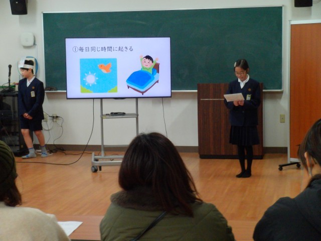 学校医の先生とPTA保健給食委員会の方をお迎えして、学校保健委員会を実施しました。初めに保健委員会の児童が「早寝、早起き、朝ごはん」をテーマに発表しました。スライドを使った説明と睡眠に関する劇「ねこすけくんがねてるあいだに・・」の発表でした。校医先生やPTAのみなさんからは、とても分かりやすかったとほめていただきました。その後は、校医先生から睡眠や朝ごはんの大切さについて講話をしていただき、とても勉強になりました。今日の発表は、児童集会で全校児童にもう一度披露します。