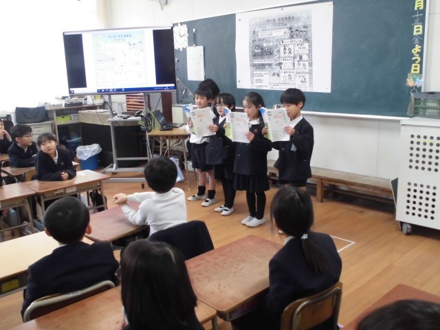 1年生 1組 学級活動「学習ミニ発表会をしよう」 2組 学級活動「プログラミングに挑戦しよう