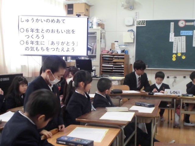 2月16日 1年生 学級活動「『6年生ありがとう集会』の計画を立てよう」