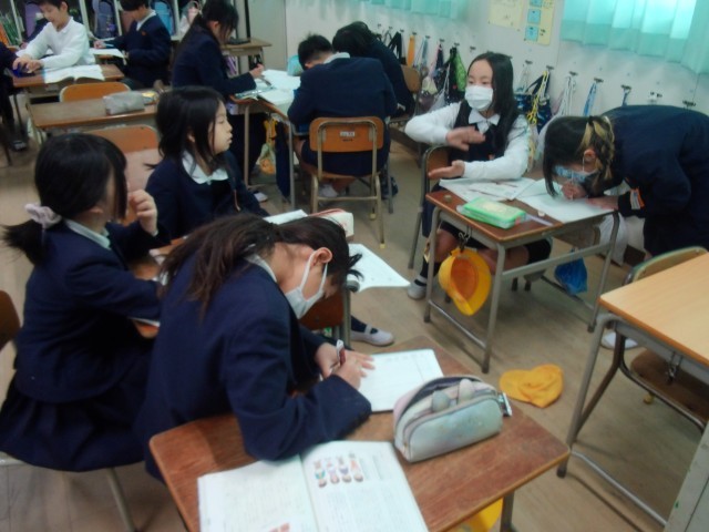 4年生が国語の学習で、班ごとにテーマを決めてアンケートを取った結果をもとに報告する学習に取り組んでいます。今日は、アンケート結果をどのようにまとめていくか話し合いました。みんなで協力し合いながらしっかり話し合っていました。