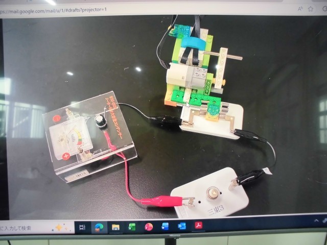 6年生が、理科で「電気をむだなく使うプログラムをつくってみよう」の学習をしました。手回し発電機で作った電気をコンデンサーにためて人感センサーを使ったプログラミングに挑戦しました。なかなか思い通りに動きませんでしたが、先生の助言をもとに最後にはなんとか動かすことができました。