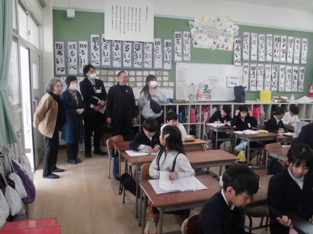 地域やPTAの方に来ていただき、学校の運営について成果や課題を伝えさせていただきました。その後、校内を回って子どもたちの学習の様子を見ていただきました。