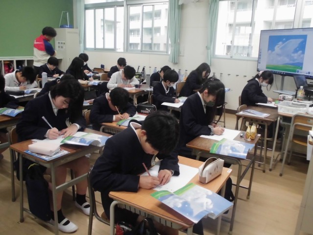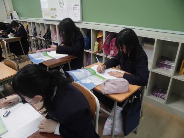 6年生が国語の学習で「いのち」の詩の学習をしました。しっかり読んだ後は、視写をしました。みんなとても集中して書いていました。