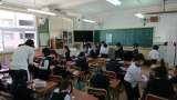 6年生が、教頭先生から、「ダブルダッチ」の縄の回しかたをおしえてもらいました。