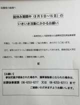 【緊急連絡】(4月8日〜)学校休業に伴ういきいき活動の休止について