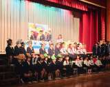 6年「12年後の同窓会」の劇の様子です。『僕たちの歩いていく道はきっとちがうけれ...