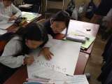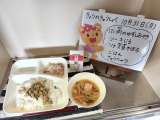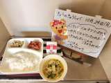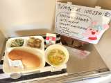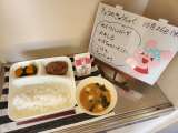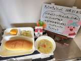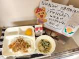 今日の給食は、豚肉のカレー風味焼き、はくさいのスープ、もやしとピーマンのいため...