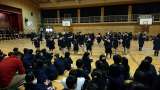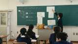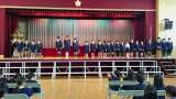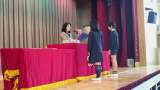 校長先生のお話を聞いたあと、5年生の代表が校長先生から通知表をもらいました。