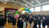 お花のアーチをくぐって、6年生がにこやかに退場しました。