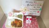 今日の給食は、牛肉と大豆のカレーライス【米粉】、きゅうりのピクルス、りんごゼリ...