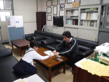 引きます。校長先生もカードを1枚引きます。