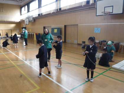 今日は1年生が昔あそびを体験する