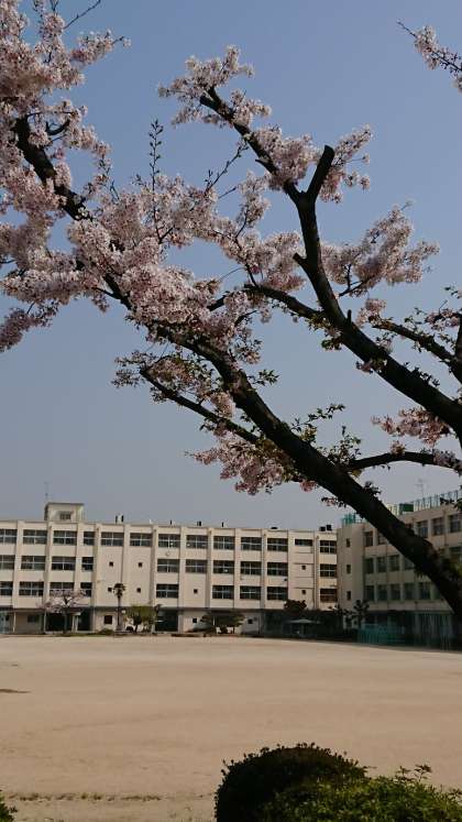 校庭の満開だった桜が、昨日までの雨で散り始めています。