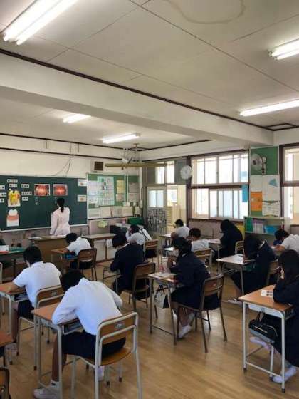 歯科衛生士さんに講師として来ていただき、虫歯や歯周病についてのお話を聞きました。