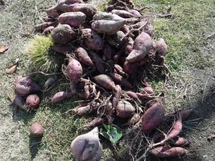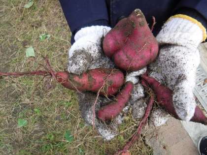 一生懸命、雑草を抜いて世話をしていたので立派なさつまいもが育っていました。
