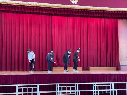 4時間目は、講堂でダンスをしたりゲームをしたりして楽しみました。