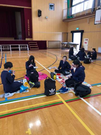 お昼は、各自持ってきたお弁当を一緒に食べています。