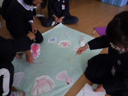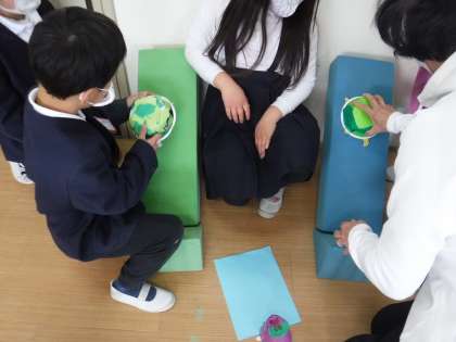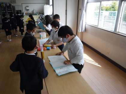 生活科の学習で手作りおもちゃを作り、1年生を招待しておもちゃランドを開催しました。国語科で考えた手作りおもちゃの説明文を読んで、1年生に楽しく遊んでもらえるように工夫をしました。