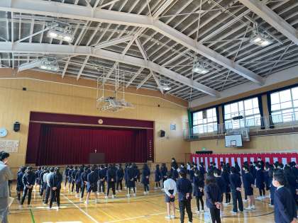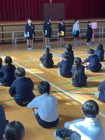 修了式では、春休みのくらしについてのお話を聞いたり、各学年の代表が1年間にがんばったことを発表したりしました。