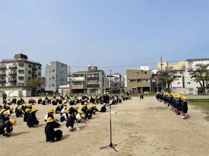 対面式では、昨日入学した1年生と初めて出会いました。1年生の子どもたちも緊張した様子でしたが、休み時間には2年生といっしょに元気に遊ぶ姿が見られました。