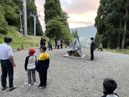 日が暮れてきました。 キャンプファイヤーの準備をしています。