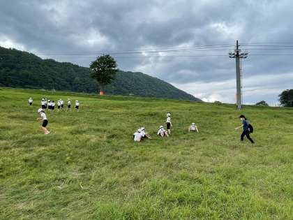 大自然の中、走ったり転がったり、虫探しをしたりしています。