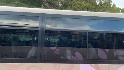 午後1時頃、バスに乗り込み小林小学校へ出発しました。