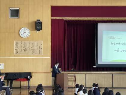 今日は、学校保健委員会がありました。学校医、児童、教職員が集まり健康について話し合います。