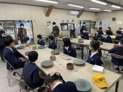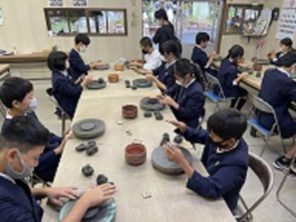 陶芸の説明を聞いて、世界で一つだけの作品を作りました。