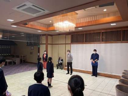 これからお世話になる宿舎の人に、「よろしくお願いします」とあいさつをしました。