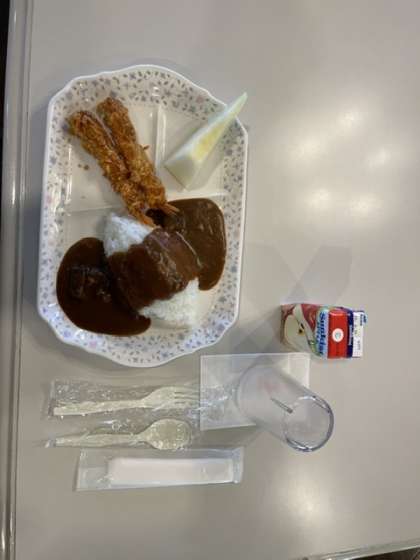 昼食は、エビフライカレーライスでした。