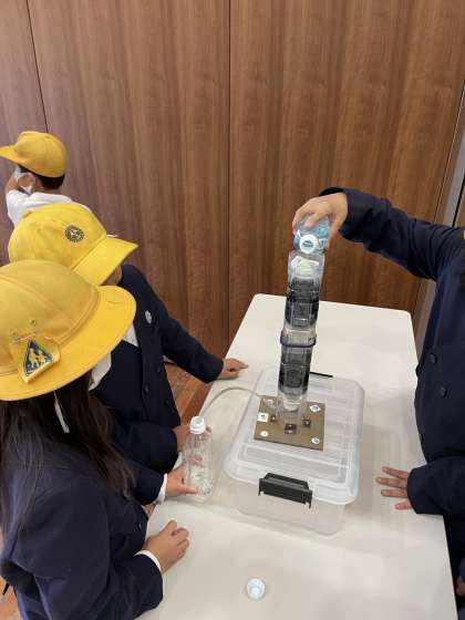 実験をし、汚い水がきれいになっていく様子を実際に見ることもできました。