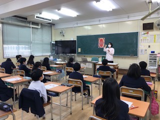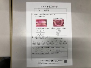 学校歯科衛生士の先生に来ていただいて歯みがきの仕方を学習しました。