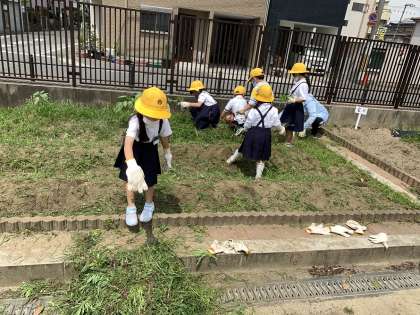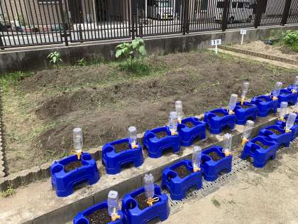 学習園には雑草が沢山生えていたので、草抜きをした後に、ひまわり、ほうせんか、風船かずらの種を植えました。