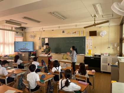 C-NETのネリ先生と一緒に英語の歌(1-20までの数字の歌)を歌っています。