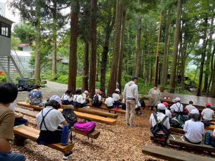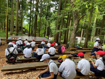 自然の中で、風や生き物の鳴き声を感じながら、お昼ご飯を食べています。