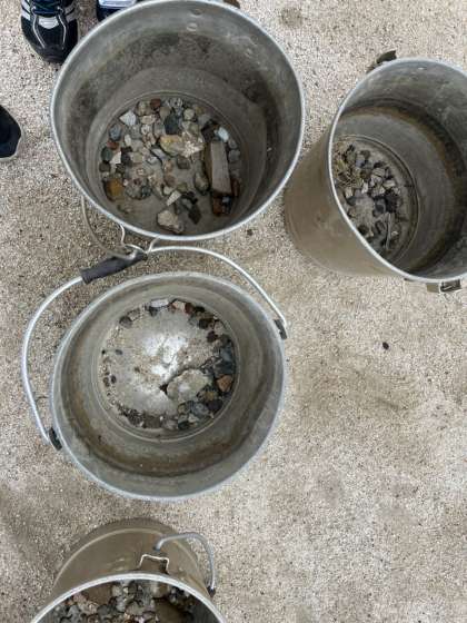 今日の児童集会は、石拾いです。