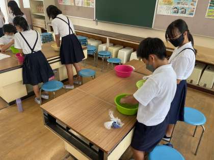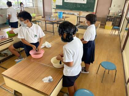 今日は、家庭科で洗濯実習をしました。