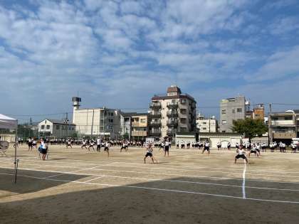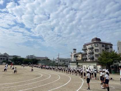 応援団の応援に合わせて声を出したり、手拍子を叩いたりする練習をしました。運動会まであと少しです。