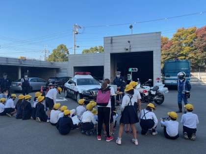 3年生が社会科の学習として、大正警察署に見学に行きました。警察官のお仕事の紹介や、白バイ・パトカーの紹介などたくさんのことを教えていただきました。ありがとうございました。