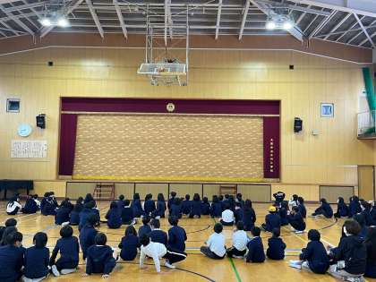 今日の児童集会は集会委員会による『間違いさがし』です。20秒間で様子を覚えて、次に現れる時にどこが違うのか探します。答える子どもたちは班で協力しながら楽しく取り組んでいました。