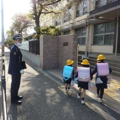 大正警察署の方が登校見守りに来られました。ありがとうございました。