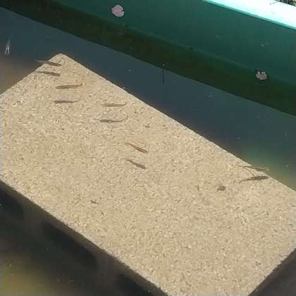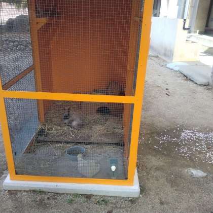 小林小学校のウサギとメダカです。大事に育てています。 仲良くしてね。