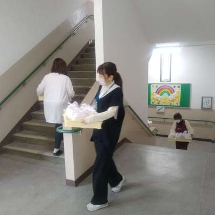 今日はつつじ食堂の方が明日の朝食用のパンと飲み物を配ってくれました。 ありがとうございました。