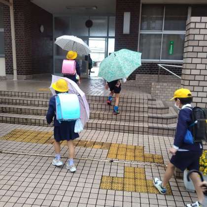小雨の中での登校になりました。