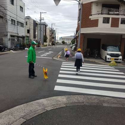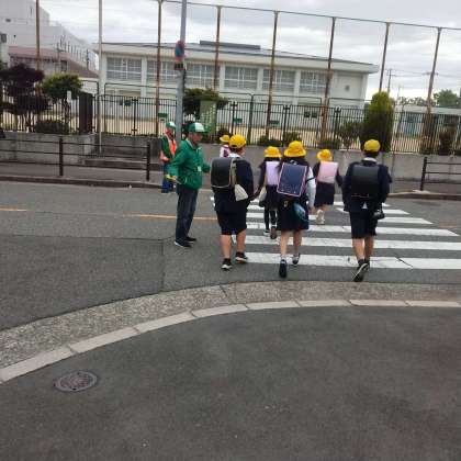 多くの地域の方に見守られて子どもたちは登校してきます。