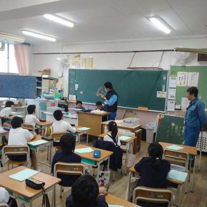 大阪市環境局のかたが4年生にパッカー車や環境について教えてくださいました。